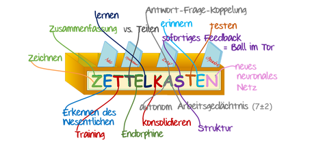 Der altehrwürdige Zettelkasten, auch Lernkartei, Lern-Box oder Kartei-Kasten genannt, hat sicher schon so manchem Lernenden zu brillanten Ergebnissen verholfen und so manchen Verzweifelten durch die Prüfung gebracht.