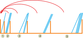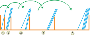 Ist die Antwort richtig, wandert die Karte in das nächste Fach. Ist die Antwort falsch, bleibt sie in Fach 1. Die Karten in den Fächern 2, 3, 4 und 5 werden wie oben beschrieben bearbeitet. Ist die Antwort richtig, wandert die Karte ein Fach weiter.