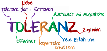 Wir lernen auch eine andere Meinung als die unsere mit Anstand auszuhalten, denn Toleranz kommt von "tolerare", was "erleiden, ertragen erdulden" bedeutet, und nicht von "toll".