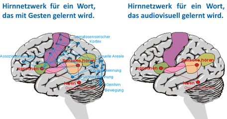 Wir können aber auch ganz gezielt Bewegungen mit Lernen verbinden, indem wir uns beim Lernen bewegen. Wenn man beim Erlernen einer Fremdsprache, dazu passende Bewegungen macht, werden viel mehr Gehirnareale aktiviert und wir können besser lernen und uns später besser daran erinnern, wie uns Manuela MACEDONIA in einer von ihr durchgeführten Studie zeigt.