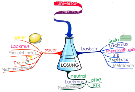 Das folgende Beispiel zeigt die Zusammenfassung einer Unterrichtsstunde zum Thema „Saure, basische, neutrale Lösungen“ in der Stufe 7: